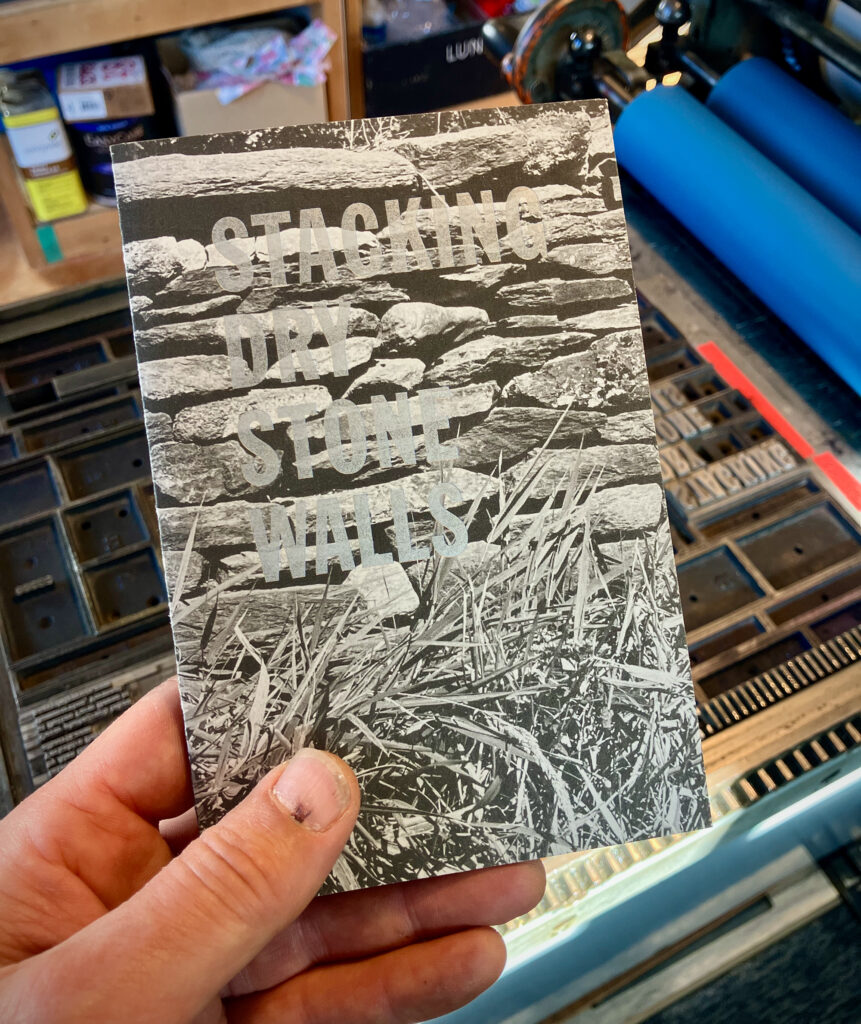 72 pages (digitally printed on Lettermark 70lb cream), illustrated with 20 black and white photographs (full bleed; 16 photos by Brent Nicastro, others by Stephanie Edwards, Michael Koppa, and Al Harris), 6 x 9, Smyth bound in three signatures in hardcovers with linen book cloth by Grimm Book Bindery in Madison, Wisconsin, plus Stonehenge dust jacket, letterpress printed from granite tiles by The Heavy Duty Press. ISBN 979-8-9893902-2-9
